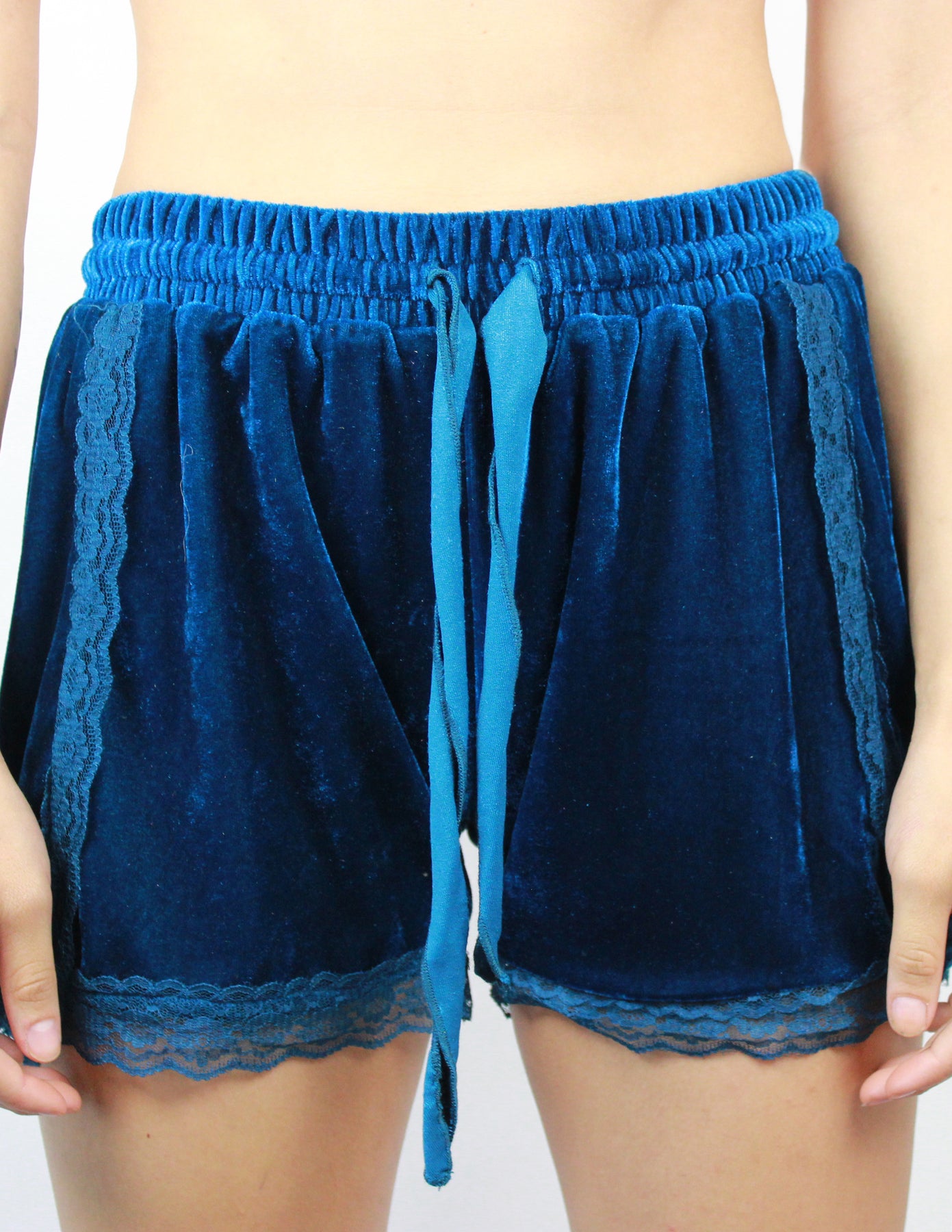 Our Ethanol shorts are made of soft velvet. They have an elastic waistband and delicate lace detailing. Comes in 3 colors